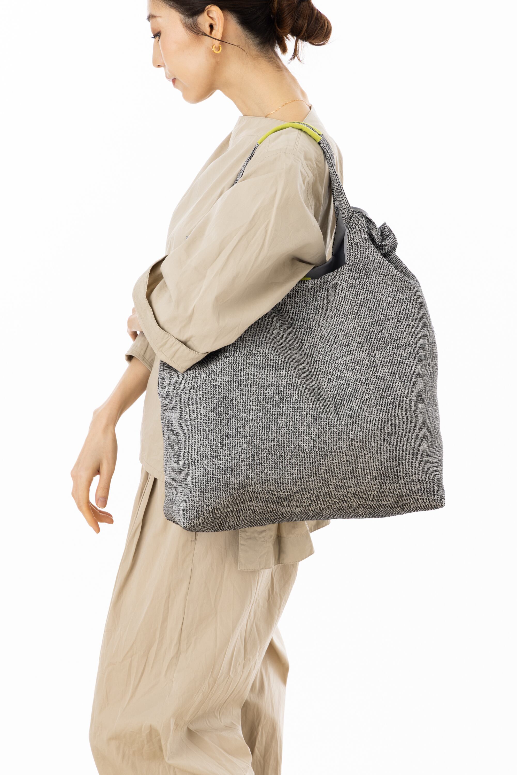 開閉のしやすい巾着型のシャーリングバッグはcharm定番の人気のカタチです。