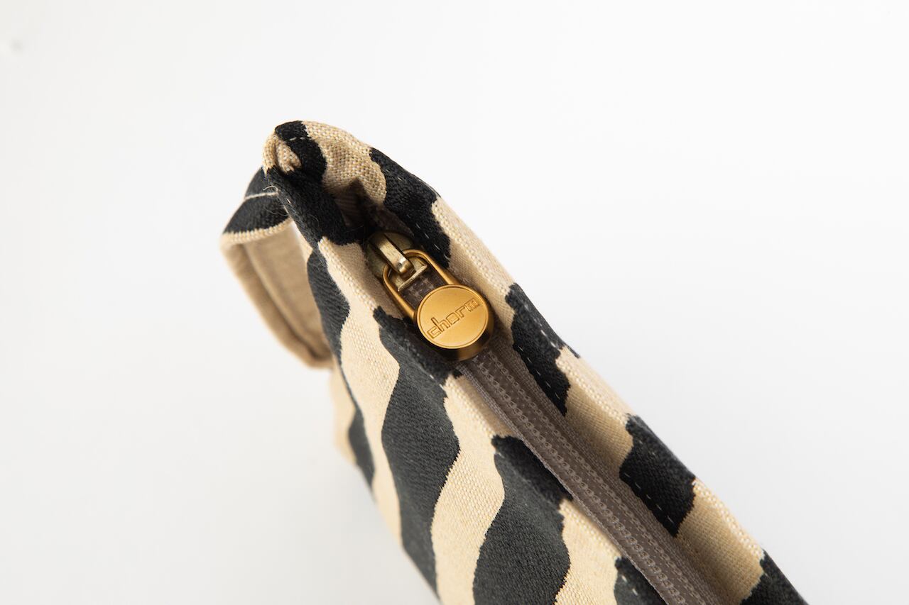 サーフィンの軌跡をモチーフにした柄が印象的なフランスのジャカード生地を使用したバッグ。